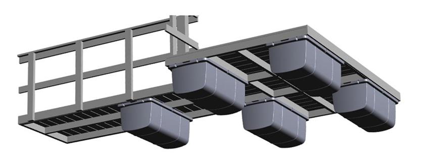 Модули плавучести плотно прилегают к основанию настила и имеют специальные проушины для крепления:
