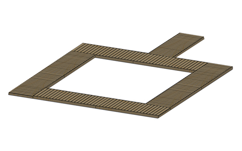 Причал - это инженерное сооружение состоящее из настилов поддерживаемых на воде пластиковыми модулями плавучести (понтонами). Основание настила выполнено из высококачественной древесины обработанной специальными средствами, предотвращающими гниение. Верх настила - террасная доска (специальный материал применяемый при строительстве гидротехнических сооружений).